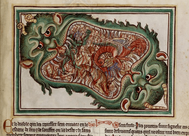 Boca infernal, miniatura representando el Apocalipsis, Salisbury, siglo xiii