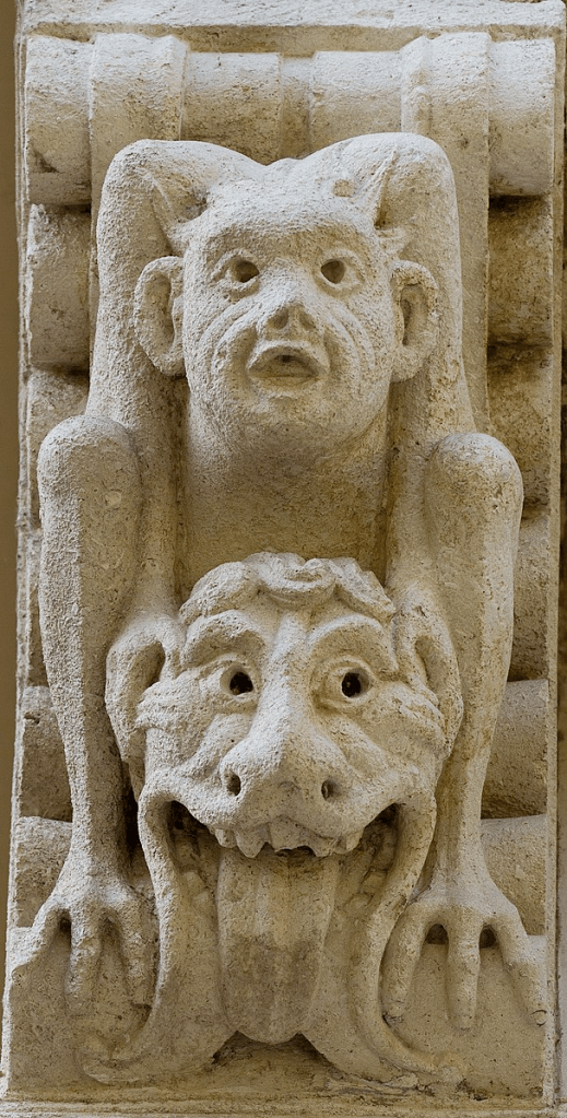 En los capiteles de las catedrales que, hacia el siglo xii, comienzan a alzarse en Europa nos encontraremos con estatuas y decorados de mujeres monstruosas con una feroz cabeza de león entre las piernas representando la boca del infierno. La imagen reaparece en los misterios o representaciones dramáticas religiosas medievales, en los que, al representarse el juicio final, se ponía en escena, a modo de recurso visual, una boca del infierno de apariencia monstruosa, emulando una ballena o un dragón, cuya función era tragarse a las almas pecadoras condenadas para la eternidad. Así también, los manuscritos medievales son generosos en iluminaciones, decorados y miniaturas retratando el acceso al infierno como un monstruo cuya boca de apariencia vulvar vomita llamas mientras devora a los pecadores.